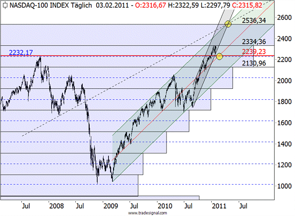 Der Nasdaq100 ist über das letzte Hoch vor dem Crash aus dem Jahre 2007 bei 2.232 Punkten ausgebrochen. Damit ist aus Sicht des Technologie-Index der Crash komplett abgearbeitet. Eine interessante Entwicklung, mit der Anfang 2009 kaum jemand gerechnet hätte.
