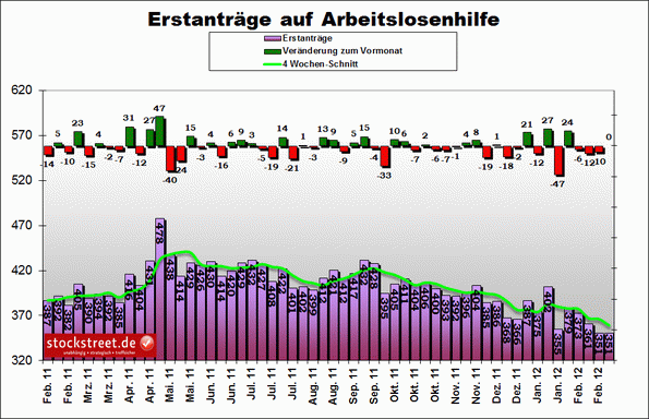 Die 400.000er Marke scheint nachhaltig gebrochen zu sein. So lange die Erstanträge nicht wieder über dieser Marke notieren, ist dies ein eher positives Zeichen.