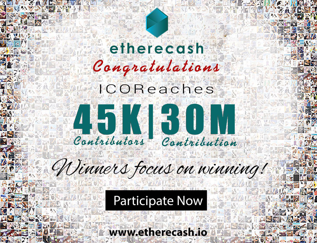 Crypto-lending ICO Etherecash has announced contributions of over 30 million USD and over 45000 new registrations. Due to this huge success, the ICO will be finishing ahead of schedule, on 12th Dec 6:29 PM (GMT). Finishing almost a week following four bonus rounds that were even more successful than expected.