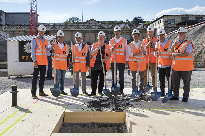Startschuss für das erste Gebäude der Lokstadt in Winterthur -Grundsteinlegung im Beisein von Stadträtin Christa Meier | Implenia setzt beim neuen Stadtteil auf Nachhaltigkeit | Haus Krokodil aus Holz