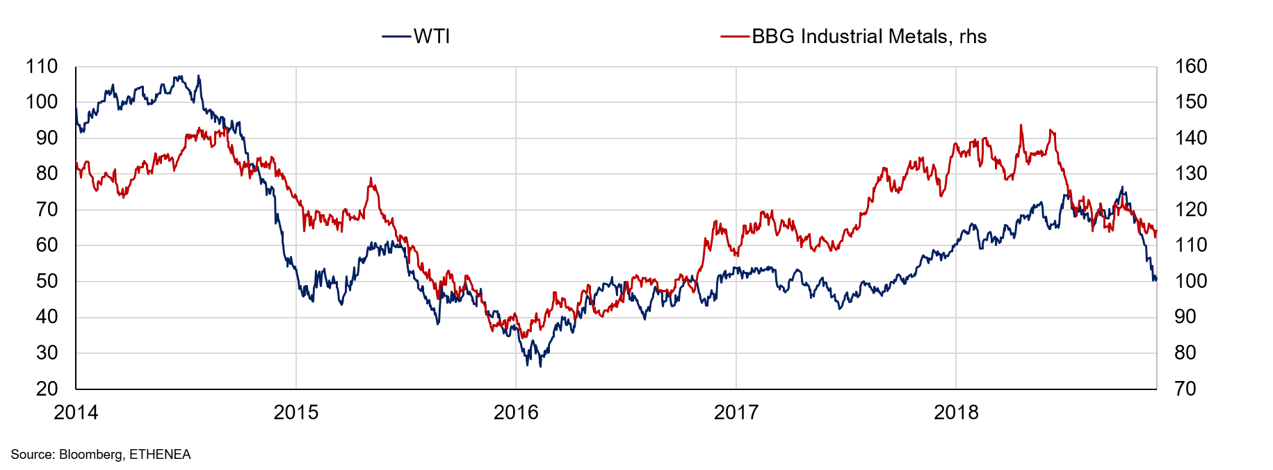 Grafik 5: Entwicklung der Preise der Rohölsorte WTI sowie eines Industriemetall Index