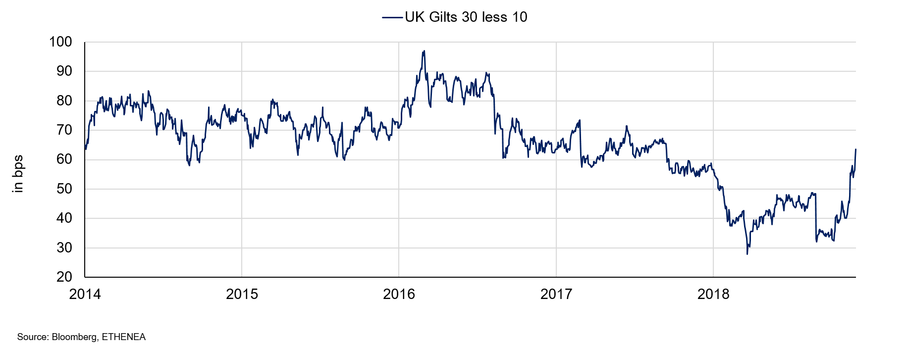 Grafik 2: Entwicklung des Renditeunterschieds zwischen der aktuellen 30- und 10-jährigen britischen Staatsanleihe
