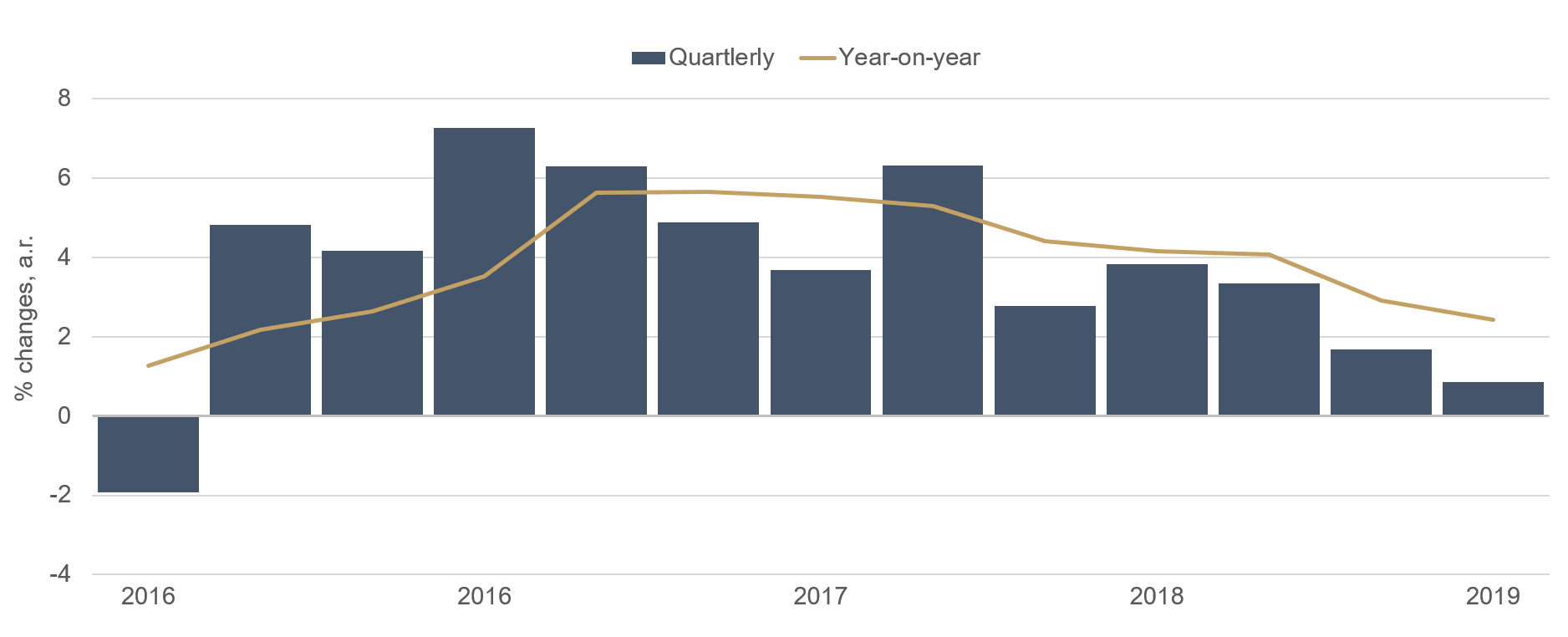 Aber es gibt auch positive Nachrichten zum Welthandel. Die USA haben die Importzölle für türkischen, mexikanischen und kanadischen Stahl wieder gesenkt. Und eine Entscheidung über erhöhte Einfuhrzölle für Autoimporte aus Europa und Japan in die USA wurde zunächst auf die lange Bank geschoben. Dieses dürfte zunächst mit Erleichterung wahrgenommen werden, aber eine vollständige Entwarnung ist das sicherlich nicht. In diesen ungewissen Zeiten mit geringer Planungssicherheit ist es nicht verwunderlich, dass das Wachstum des Welthandels nach Berechnungen der OECD im ersten Quartal 2019 nur noch knapp über null lag.