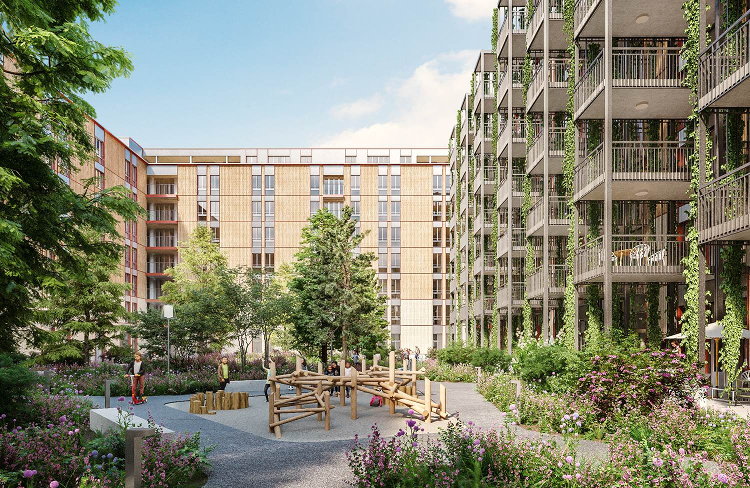 Auf dem Areal in Winterthur entsteht ein städtebaulich und architektonisch hochwertiges Gesamtprojekt mit über 200 Wohnungen oder rund 17 000 m2 vermietbarer Fläche. Im Erdgeschoss wird es zudem auf rund 900 m2 publikumsorientierte Nutzungen geben. Das Gebäude wird über sieben Vollgeschosse und ein Attikageschoss verfügen, wobei ab dem ersten Obergeschoss ein Holzbau entsteht. Damit passt das Projekt perfekt in die Gegend: Im aufstrebenden Quartier Neuhegi entwickelten und bauten die Spezialisten von Implenia bereits das benachbarte Projekt sue&til - die grösste Wohnbausiedlung aus Holz in der Schweiz.