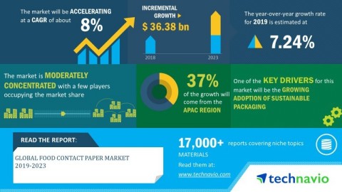 The food contact paper market size is poised to grow at a CAGR of about 8% during the period 2019-2023, according to the latest market research report by Technavio. Request a free sample report