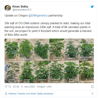 Insgesamt soll der Jahresumsatz 2020 allein aus Oregon 6-8 Mio. USD (8-10,7 Mio. CAD) betragen.