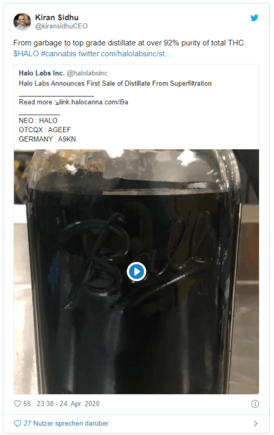 Kalifornien: In Kalifornien erstarkt das Geschäft mit Cannabiskonzentraten wieder (Shutdown wegen der Krise bei den Inhalationsgeräten in Q4 2019). Daneben wurden im Vertrieb der Halo Labs-Eigenmarken Rekordumsätze erzielt. Im ersten Quartal 2020 wurden hiermit 376.000 USD (536.000 CAD) und allein im April schon 343.000 USD (490.000 CAD) umgesetzt. Dies entspricht einem Absatzzuwachs von rund 275% für den April gegenüber dem Durchschnittsmonat aus Q1 2020.