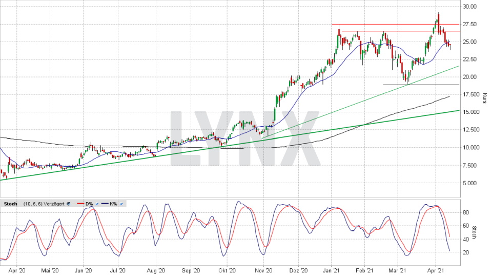 Die Nordex-Aktie gehörte zu den größten Gewinnern im März. Doch im April ist sie bislang einer der größten Verlierer. Ist es vorbei mit der bullischen Phase? Oder holt die Aktie nur Schwung, um in Kürze erneut durchzustarten?Den vollständigen Artikel lesen ...© 2021 LYNX-Werbemitteilung - Bitte beachten Sie den Haftungsausschluss