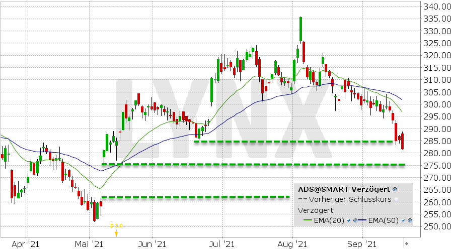 Seit unserer letzten Analyse auf den deutschen Sportartikelhersteller im Juni dieses Jahres hat sich einiges getan. Mittlerweile befindet sich die adidas-Aktie bereits in einer bärischen Trendphase.Den vollständigen Artikel lesen ...© 2021 LYNX-Werbemitteilung - Bitte beachten Sie den Haftungsausschluss