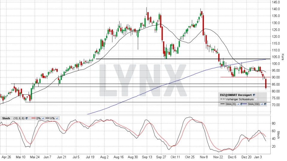 Bis September schien die Eckert & Ziegler-Aktie eine Einbahnstraße zu sein: Im Hoch standen 215 Prozent Plus seit Ende 2020 zu Buche. Doch es folgten eine Toppbildung und der Abstieg. 2021 blieben zwar trotzdem 110 Prozent Plus. Aber der Start ins neue Jahr sieht bärisch aus.Den vollständigen Artikel lesen ...© 2022 LYNX-Werbemitteilung - Bitte beachten Sie den Haftungsausschluss