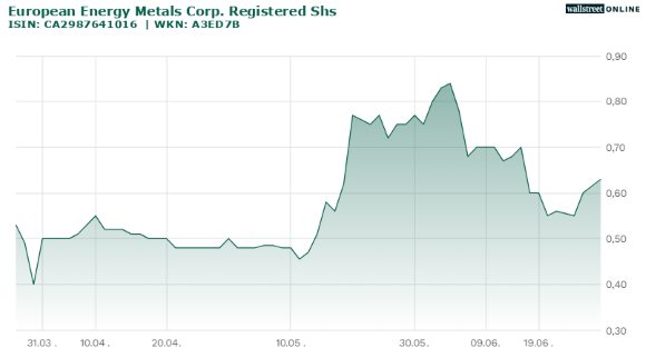 Aktuell wird European Energy Metals bei einem aktuellen Kurs von rund 0,63 CA$ nur mit knapp 13 Millionen CA$ bewertet.