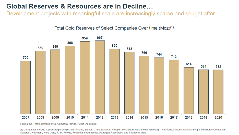 Zwar legte auch das Gold-Gesamtangebot um 7 % zu und erreichte im 2. Quartal 2023 gute 1.255 Tonnen und auch die Goldminen-Produktion erreichte mit 923,4 Tonnen ein Plus von respektablen 4 %, doch angesichts rückläufiger Produktionsprofile und schrumpfender Reserven globaler Goldplayer und deren Projekte, wird diese Steigerung kaum ausreichen, um die anziehende Goldnachfrage zu decken.
