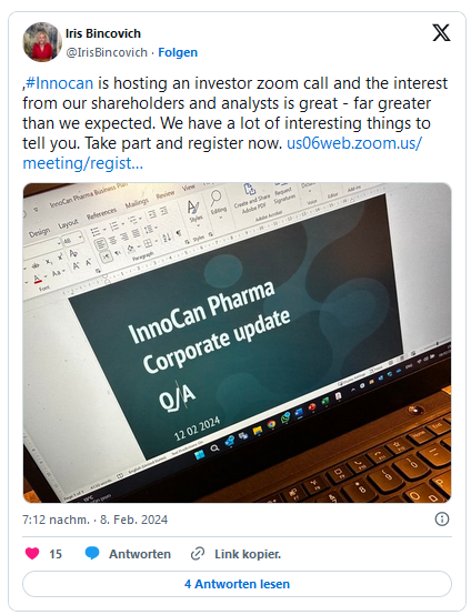 Aktuell: Innocan Pharma to provide a corporate update via livestream video on February 12, 2024, at 4:00 pm EST
