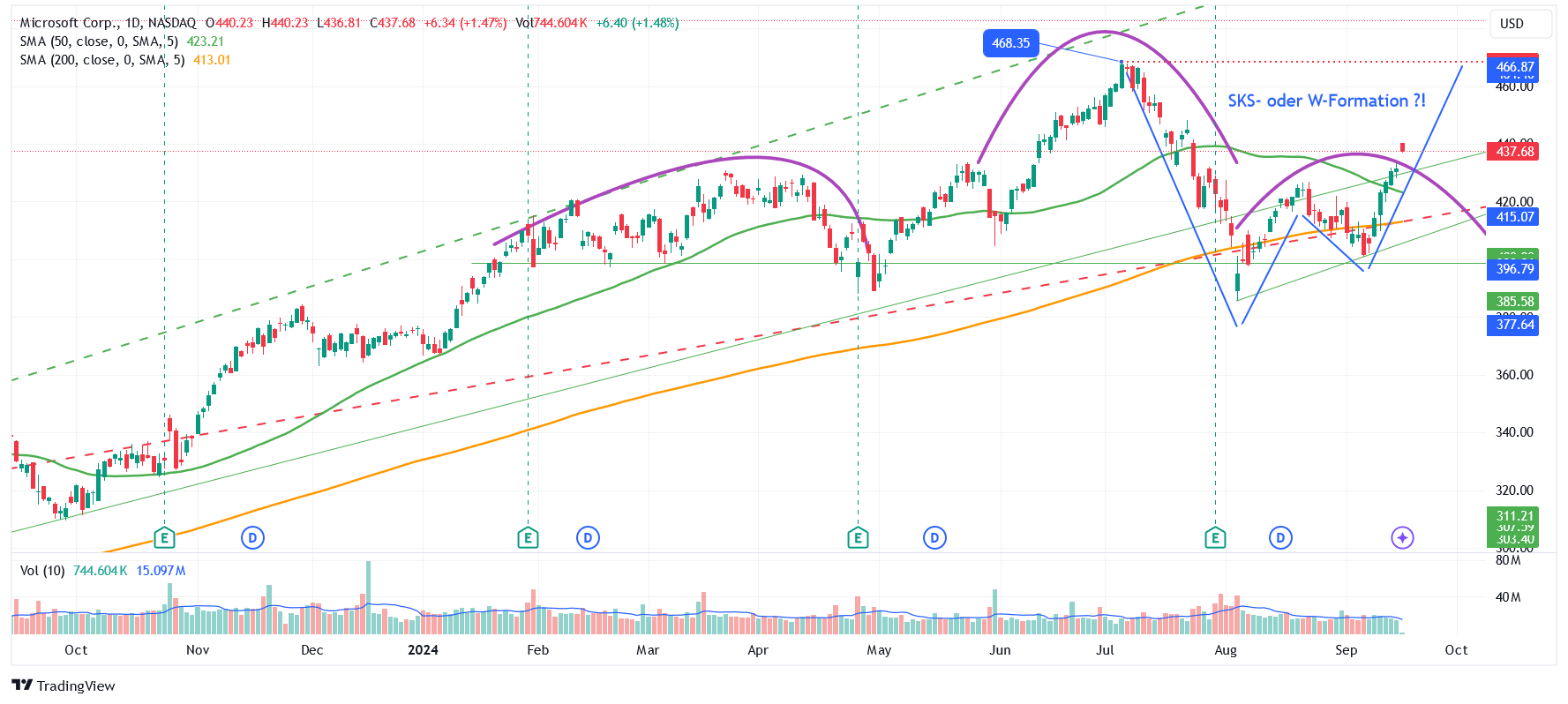 Als eine der seit dem August-Rücksetzer der (Großen) Techaktien, insbesondere der Mag7, sich besser erholenden Aktien, hat sich Microsoft hervorgetan. Mit der aktuellen Meldung von Aktienrückkäufen & Dividendenerhöhung sei ein Auge auf die Charts geworfen.