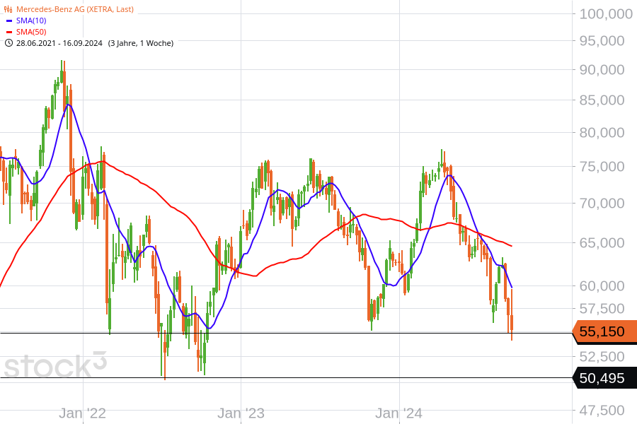 Die Aktie verliert heute 6,5 %, hat auf dem Tagestief aber bereits 8,4 % im Minus notiert. Damit hat Mercedes-Benz die rote Laterne im DAX inne. Auslöser: Das Unternehmen hat seine Gewinnerwartungen für das Gesamtjahr 2024 gesenkt. Die Prognosekorrektur wird hauptsächlich auf die schwächere Nachfrage in China zurückgeführt, einem der wichtigsten Märkte für Mercedes-Benz. Insbesondere im Bereich der hochmargigen Fahrzeuge wie der S-Klasse und der Maybach-Modelle sind die Verkaufszahlen in China zurückgegangen. Dies folgt auf eine Abschwächung des Wirtschaftswachstums und eine anhaltende Krise im chinesischen Immobiliensektor, die die Konsumstimmung dämpft.