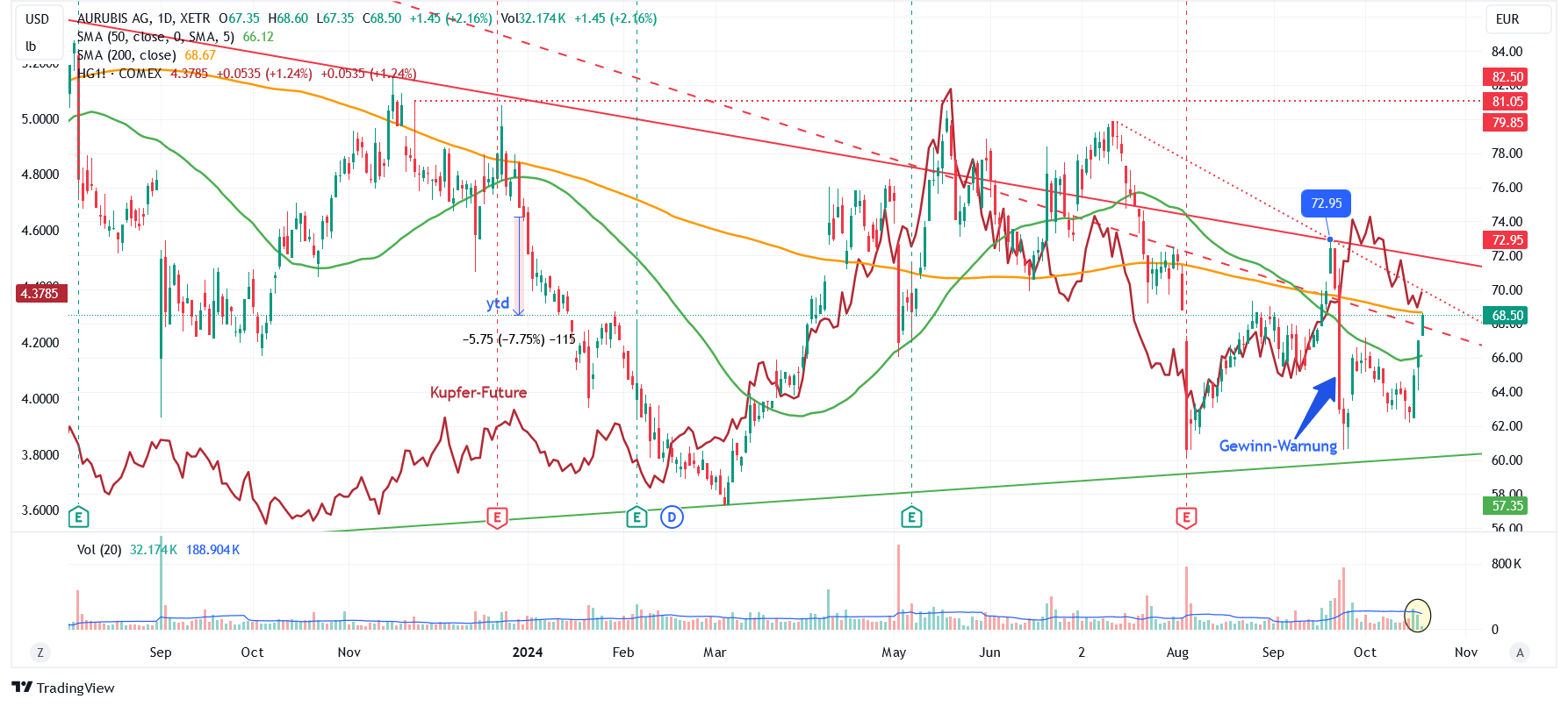 Nichsdestotrotz könnten nun lang- und kurzfristige Abwärtstrends gebrochen werden; viele bad-news sind eingepreist und eine zuletzt gewisse (oberflächliche) Korrelation mit dem Kupferpreis ist nicht von der Hand zu weisen.