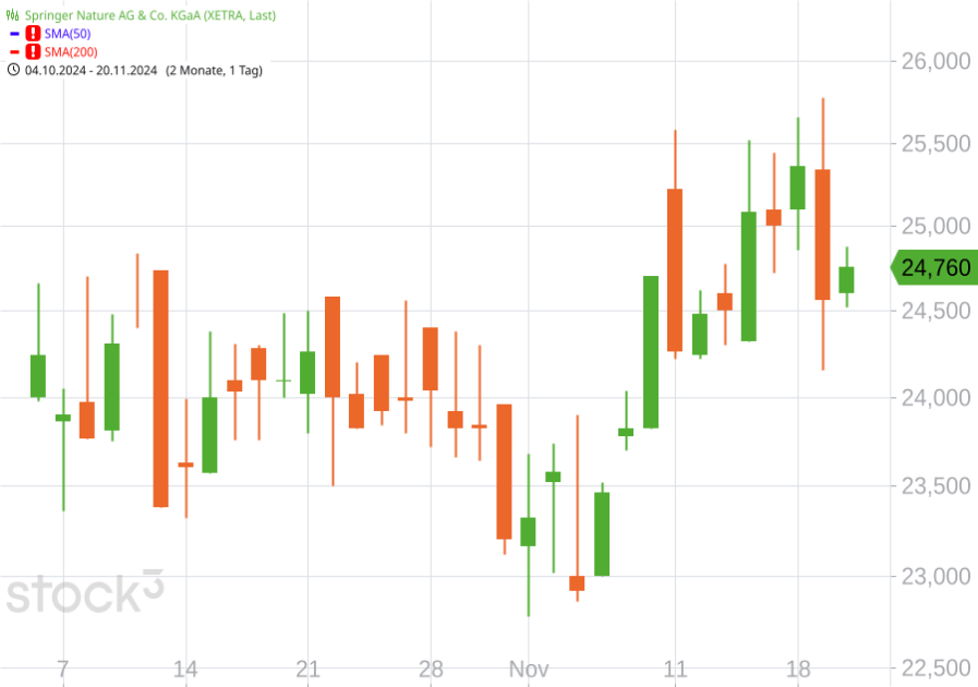 Organisch konnte der Wissenschaftsverlag allerdings ein Umsatzplus von 5,7 % verzeichnen. Das EBITDA stagnierte bei knapp 380 Mio. €, bereinigt bedeutet das ein Wachstum von 8,8 %. Die Jahresprognose mit erwarteten Umsätzen von 1,82 bis 1,85 Mrd. € und einem EBITDA von 505 bis 520 Mio. € wurde bestätigt. Nach dem IPO im Oktober hat der Kurs bereits rund 13 % gegenüber seinem Emissionspreis von 22,50 € zugelegt. Analysten stehen der Aktie mehrheitlich positiv gegenüber. Goldman Sachs ruft sogar ein Kursziel von 39 € aus. Positiv wird die starke Marktstellung bei wissenschaftlichen Publikationen beurteilt, mit Wachstumschancen durch zunehmende Digitalisierung im Verlagswesen. Kritisch muss dagegen der hohe Verschuldungsgrad beobachtet werden.