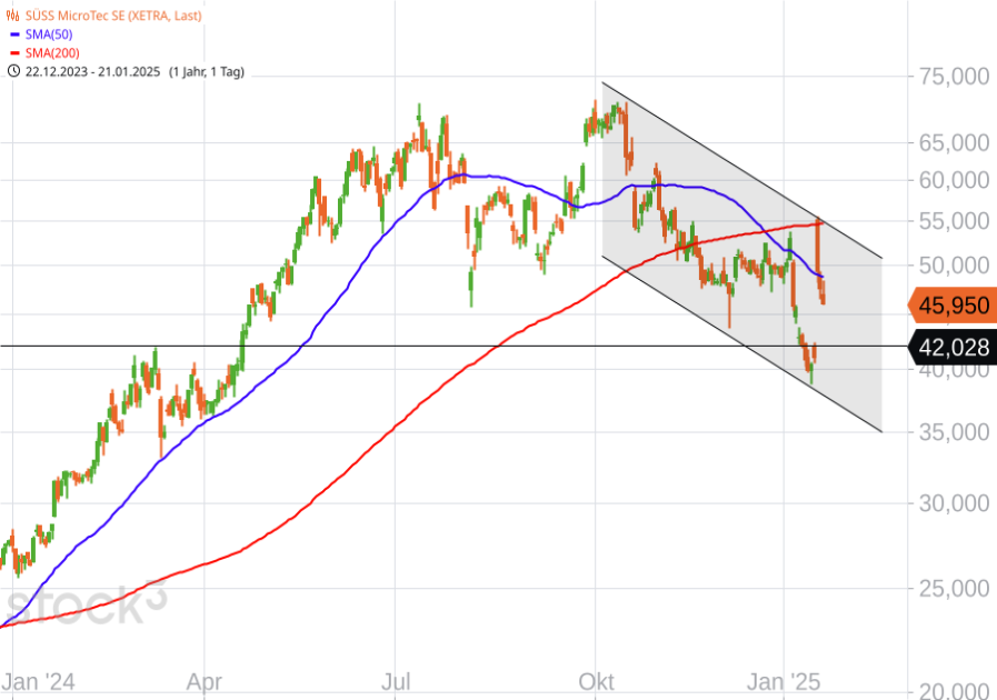 Die Umsätze im vierten Quartal von 150 Mio. € lagen deutlich über den Erwartungen (109 Mio. €). Mit einem Gesamtjahresumsatz von 445 Mio. € übertraf SUSS deutlich das obere Ende der Prognosespanne von 380 bis 410 Mio. €. Die EBIT-Marge wird für 2024 auf 17,5 % geschätzt und liegt damit über dem Konsens von 15,8 % und über der eigenen Prognosespanne (14 - 16 %). Der Auftragseingang erreichte in Q4 mit 147 Mio. € einen neuen Rekord und schafft Visibilität für 2025. Wir kalkulieren mit 12 % Umsatzplus, aber leicht schwächerer Marge (Fabrikhochlauf in Taiwan). Die Börse honorierte die News am letzten Freitag mit einem Kurssprung von 20 %.