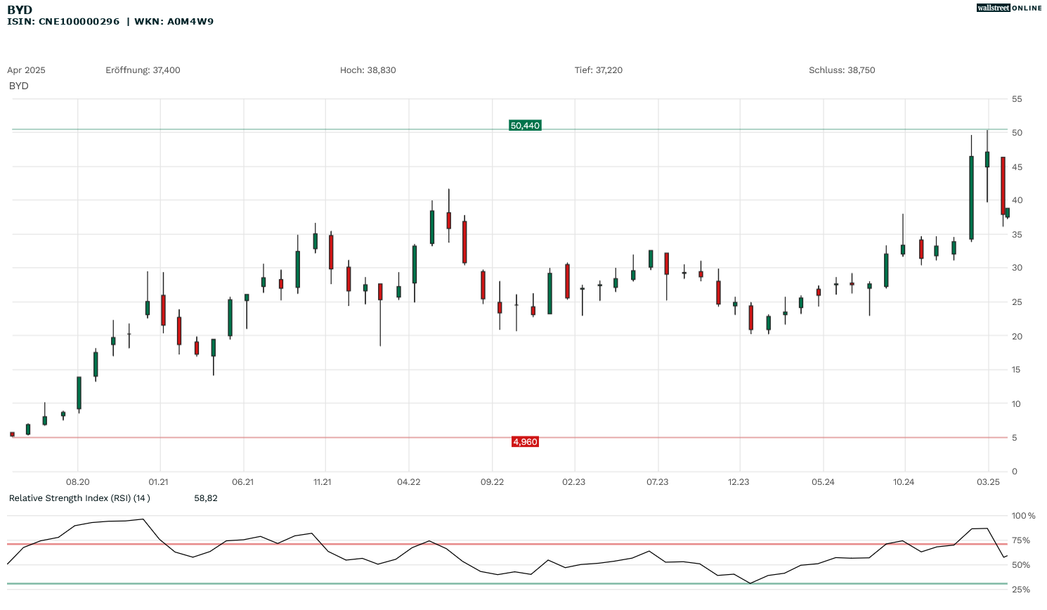 Die BYD-Aktie ist etwas für Adrenalinfans. Über 20 Prozent Kursgewinn seit Jahresstart, weit über 50 Prozent bezogen auf ein Jahr. Im März 2025 schoss sie auf ein Allzeithoch von 50,44 Euro, dann kam der Absturz, im Rahmen der allgemeinen Marktturbulenzen mit den Trump-Zöllen bis auf 36 Euro. Nun liegt sie wieder bei knapp 39 Euro. Profis würden munkeln, dass das der Klassiker von Profit-Taking nach dem Rally-Lauf ist, aber es haben natürlich auch die weltpolitischen Nachrichten eine große Rolle gespielt.