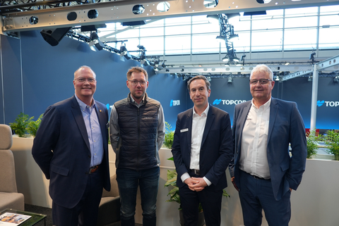 Topcon Positioning Systems has signed a memorandum of understanding with Vemcon GmbH. Pictured from left during Bauma 2025 in Munich, Germany: Thomas Hansen, Topcon Positioning Systems Vice President, Global OEM; Jan Rotard, Vemcon GmbH CEO; Dr. Holger Quast, Vemcon GmbH COO, CFO; and Karsten Dietrich, Topcon Senior Director, OEM EMEA.