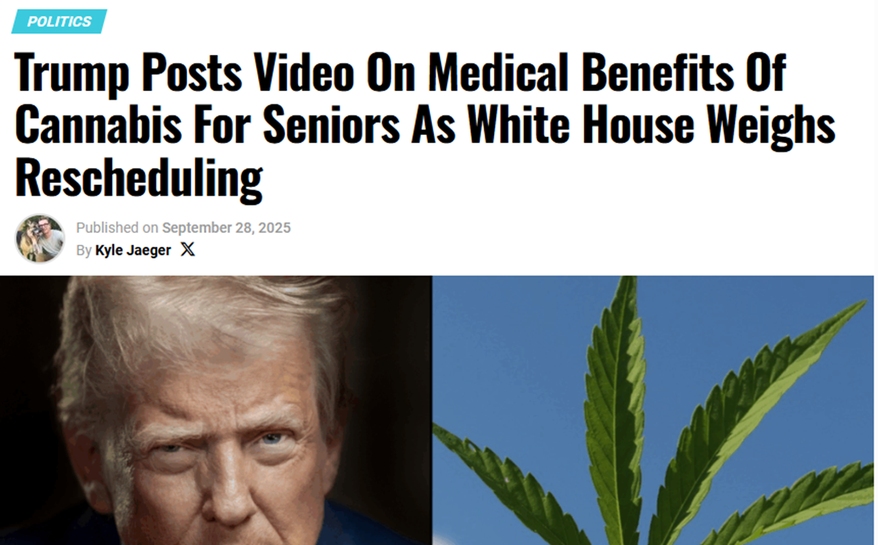 Präsident Donald Trump hat am Sonntag ein Video geteilt, in dem er die gesundheitlichen Vorteile von Cannabis anpreist. Er deutet an, dass die Übernahme von CBD durch Medicare "die wichtigste Gesundheitsinitiative für Senioren des Jahrhunderts" wäre.