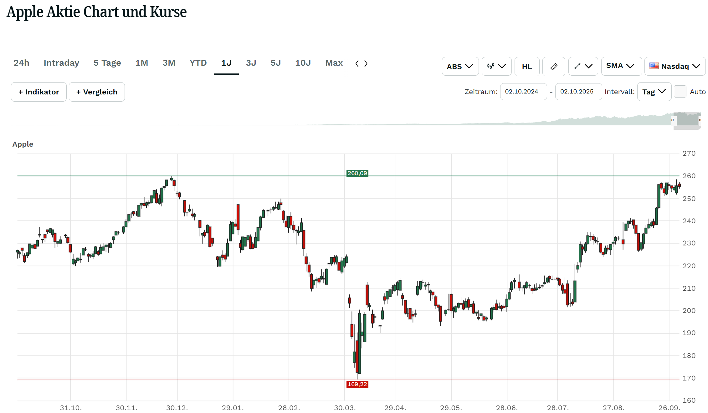 Während die Produktpipeline bei den neuen Kategorien stottert, muss sich Apple auf seine Cashcow verlassen. Die Frage ist, ob das neue iPhone 17 genügend Fantasie für die Anleger weckt. Zunächst wohl schon: Denn die Nachfrage nach dem günstigeren iPhone 17 Basismodell scheint größer zu sein als erwartet, da es mit verbessertem Display- und Kamera-Features lockt, die früher nur den teureren Pro-Modellen vorbehalten waren.