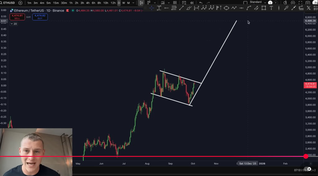 Ethereum hat Rover ebenfalls im Blick. Dort sieht er ein bullisches Flaggenmuster, das ein Kursziel von bis zu 6.500 US-Dollar ermöglichen könnte. Historisch gesehen haben Altcoins in den letzten Wochen eines Zyklus Bitcoin oft übertroffen. Rover erwartet, dass auch diesmal ein solches Szenario eintreten könnte.
