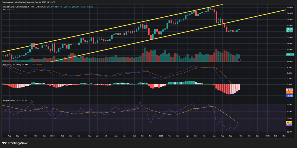 Der Einbruch der Bitcoin-Dominanz aus dem langfristigen Trendkanal ist ein potenzielles Signal für eine an Fahrt gewinnende Altcoin-Season.