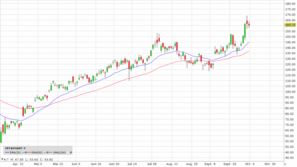Vertiv Holdings ist ein globaler Anbieter kritischer digitaler Infrastrukturlösungen und Services. Vereinfacht gesagt, stellt das Unternehmen die physische Grundlage für den Betrieb von Rechenzentren, Kommunikationsnetzwerken und Industrieanlagen sicher. Vertiv gewährleistet beispielsweise die unterbrechungsfreie Stromversorgung mit USVs und Gleichstromsystemen. Dabei werden Branchen wie Telekommunikation, Gesundheitswesen, Bildung und speziell der Rechenzentrums-Sektor, der von der Cloud bis zum "Edge of the Network" reicht, bedient. Vertiv gilt als einer der wichtigsten Infrastruktur-Profiteure des KI-Hypes.