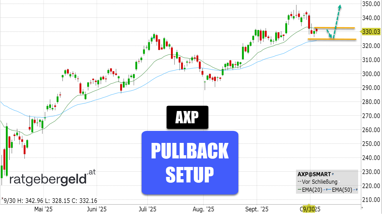 Pullback-Setup beim Kreditkartenkonzern. American Express (AXP) überrascht im zweiten Quartal 2025 die Analysten!