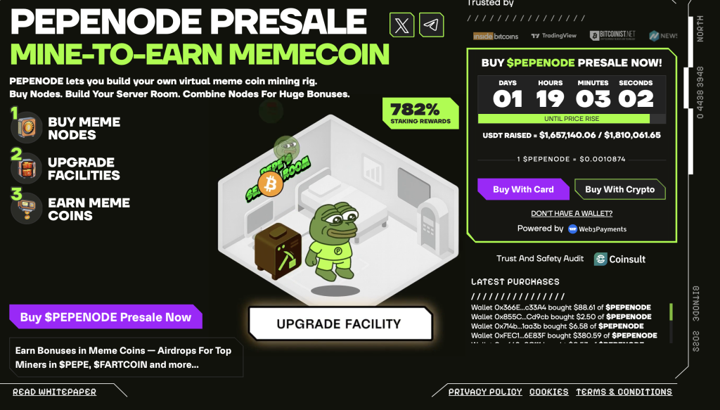 Ein entscheidender Vorteil von Pepenode liegt in seinem deflationären Modell. Die Gesamtmenge an $PEPENODE ist begrenzt, und durch das Burn-System wird das verfügbare Angebot mit jeder Aktivität weiter verknappt. Die Nachfrage nach dem neuen $PEPENODE-Token ist extrem hoch. Innerhalb kurzer Zeit wurden über 1,6 Millionen Dollar investiert, noch bevor der Token an den Börsen gelistet ist. Analysten sehen darin ein klares Zeichen, dass die Entwickler hier einen Nerv treffen und der Kurs nach dem Launch durch die Decke gehen könnte.