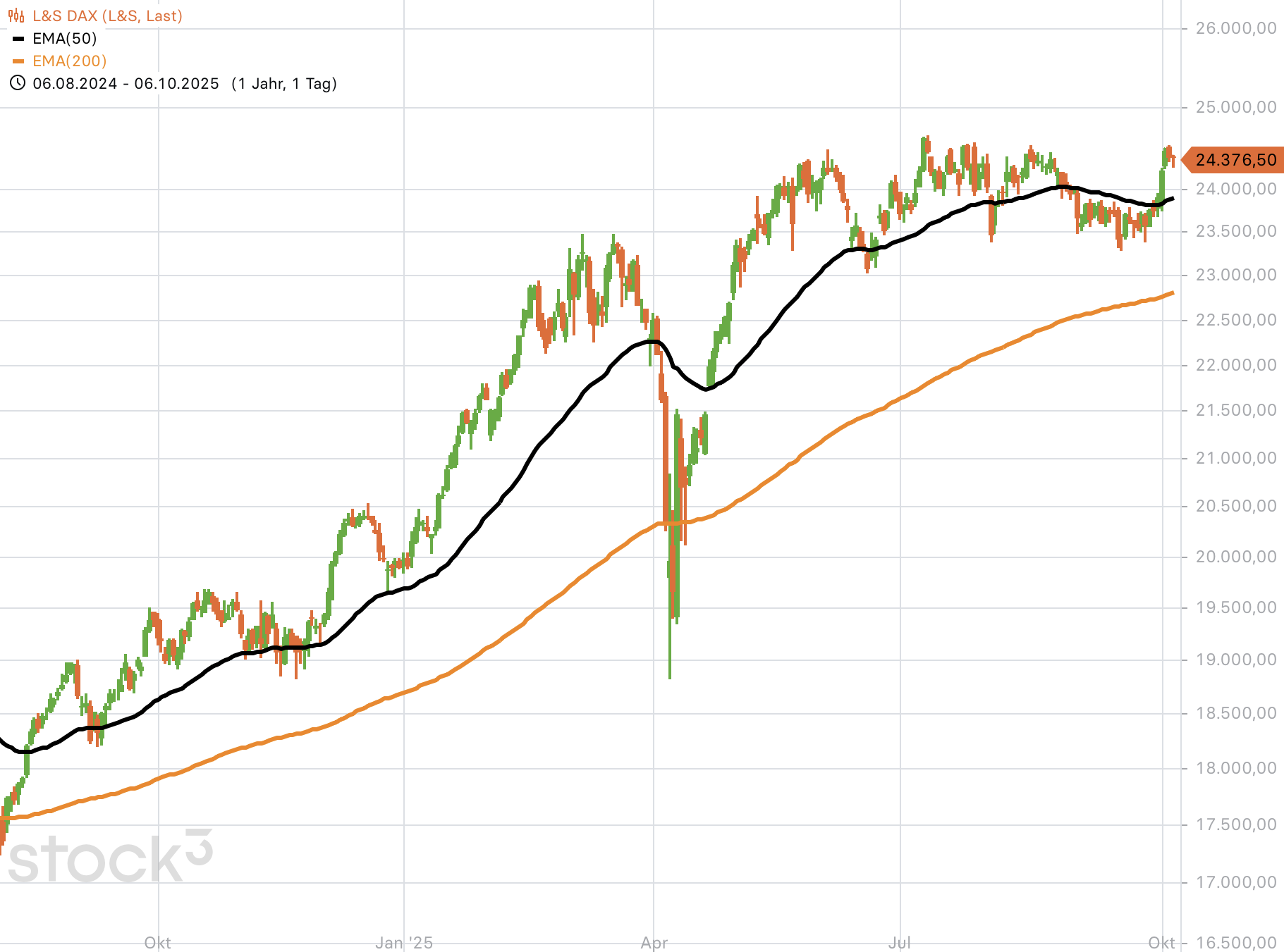 Am Freitag fiel wegen des Shutdowns der Regierungsbehörden der monatliche US-Arbeitsmarktbericht aus. Die US-Börsen präsentierten sich dennoch in robuster Verfassung, auch weil der Markt mit einer weiteren Zinssenkung der Fed rechnet. Der Dow Jones übersprang im Handelsverlauf erstmals die Marke von 47.000 Punkten und schloss mit einem Plus von 0,51 % bei 46.758 Punkten. Der S&P erreichte ebenfalls eine neue Bestmarke und beendete den Handel dann mit einem hauchdünnen Plus von 0,01 % bei 6.715 Punkten. Auch der Technologieindex Nasdaq 100 verbuchte ein Rekordhoch im frühen Handel, schloss dann aber mit einem Minus von 0,41 % bei 24.785 Punkten.