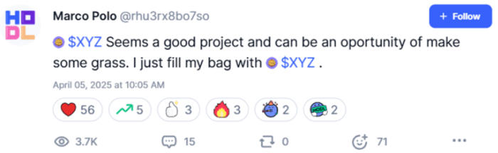 XYZ zog zudem die Aufmerksamkeit namhafter Krypto-Influencer auf sich. DanjoCapitalMaster, der fast 800.000 Follower zählt, äußerte kürzlich seine Unterstützung für das Projekt und bezeichnete XYZVerse als eine "Moonshot-Chance".