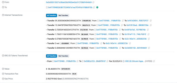Aber auch am Wochenende wurde ein Großinvestor beobachtet, der 42,2 Mio. HYPER für 560.000 USD in sein Portfolio aufnahm. Am Montag hat er dann noch einen weiteren Kauf im Umfang von 20 Mio. HYPER für damals 273.000 USD getätigt.
