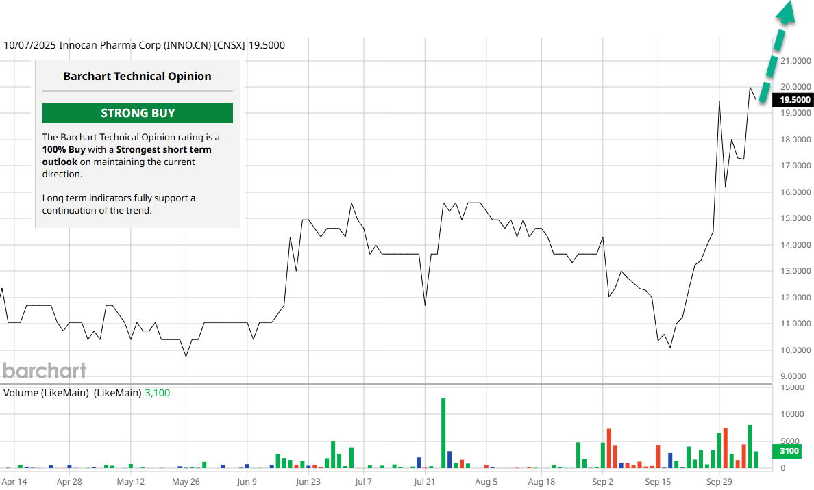 Die technische Analyse der Aktie von InnoCan Pharma* (WKN: A41FTP) weist ein "STRONG BUY"-Rating aus und legt nahe, dass die langfristigen Indikatoren auf eine Fortsetzung des Trends hindeuten. Tatsächlich hat sich die Aktie in den letzten Handelstagen verdoppelt - trotzdem ist sie noch nicht "überkauft"