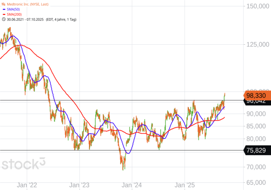 Solche langen Bodenbildungsphasen mit abschließendem Kaufsignal haben in der Regel eine hohe Aussagekraft. CFO Thierry Pieton bekräftigt für das kommende Geschäftsjahr ein Wachstum beim Gewinn je Aktie im hohen einstelligen Prozentbereich. Getrieben wird dies durch eine beschleunigte Umsatzdynamik, eine schrittweise Rückkehr der Bruttomarge auf das Vor-Corona-Niveau dank besserer Preisdurchsetzung und nachhaltiger Kostensenkungen nebst mehr Effizienz im Verwaltungsaufwand. Kleinere Übernahmen sollen aus einem jährlichen freien Cashflow von mehr als 5 Mrd. $ (Cashflow-Konversion von über 80 % bis 2027) finanziert werden.