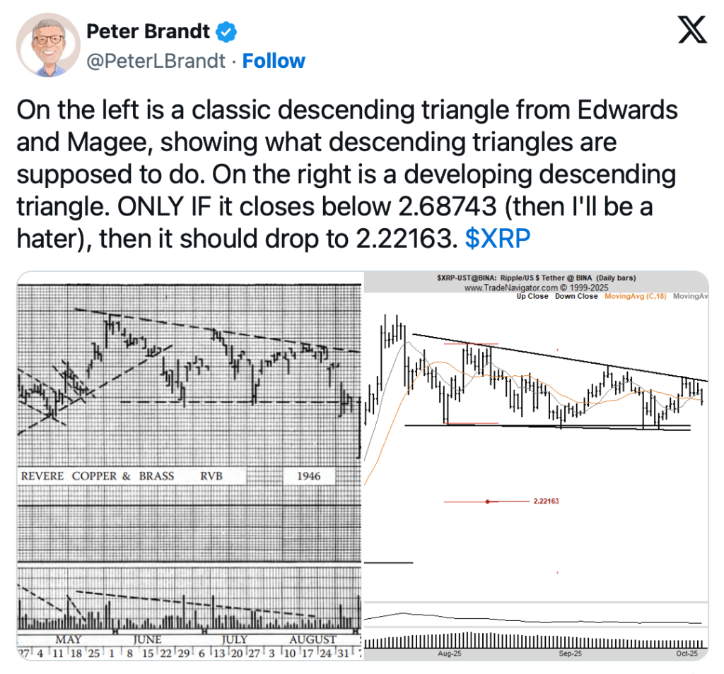 Peter Brandt identifiziert absteigendes Dreieck bei XRP