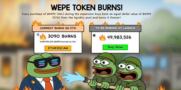 Die Froscharmee von Wall Street Pepe (WEPE) hat mittlerweile ihre Expansionsphase auf die Solana-Blockchain abgeschlossen. In diesem Zusammenhang wurden bisher von den Teilnehmern über 5,2 Mrd. WEPE-Coins eingezahlt, um sie über einen Burning-Mechanismus zu vernichten.