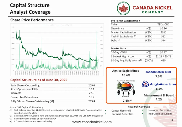 - Starke Ankerinvestoren: Agnico Eagle (10,4%), Samsung SDI (7,5%), Anglo American (6,5%) und die Takamoon Nation (7,4% nach Konverterumwandlung) stehen hinter dem Projekt - Kapital und Branchen-Know-how sind damit abgesichert.