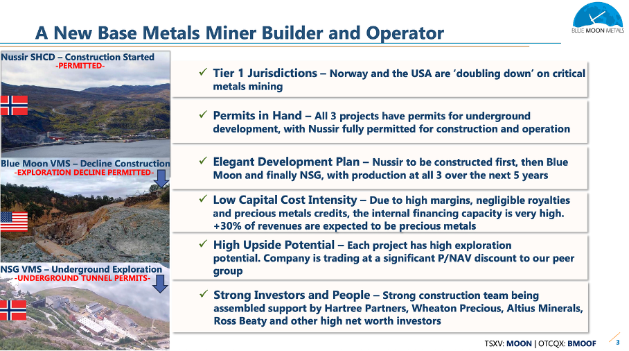 Und Gold bleibt das bewährte Stabilitätsmetall in einer Welt aus Schulden, geopolitischen Bruchkanten und anhaltender Geldentwertung. Wer jetzt auf Critical Metals Brownfield-Projekte setzt, kombiniert Cashflow-Nähe mit Ausbau-Option - genau hier setzt Blue Moon Metals Inc. (WKN: A413T9) mit seinen Projekten Nussir (Cu-Ag-Au), NSG (Cu-Zn-Au-Ag) und Blue Moon (Zn-Cu-Au-Ag) an.