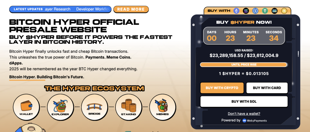 Der native Token $HYPER befindet sich derzeit noch im Vorverkauf und hat bereits über 23 Millionen US-Dollar eingesammelt, was ihn zu einem der erfolgreichsten Krypto-Presales überhaupt macht. Der überzeugende Anwendungsfall begeistert sowohl Investoren als auch Analysten, weshalb sich die Prognosen für $HYPER regelrecht überschlagen. In zahlreichen internationalen Krypto-Medien ist die Rede davon, dass der $HYPER-Kurs nach dem Launch schnell um das 50- bis 100-fache steigen könnte.