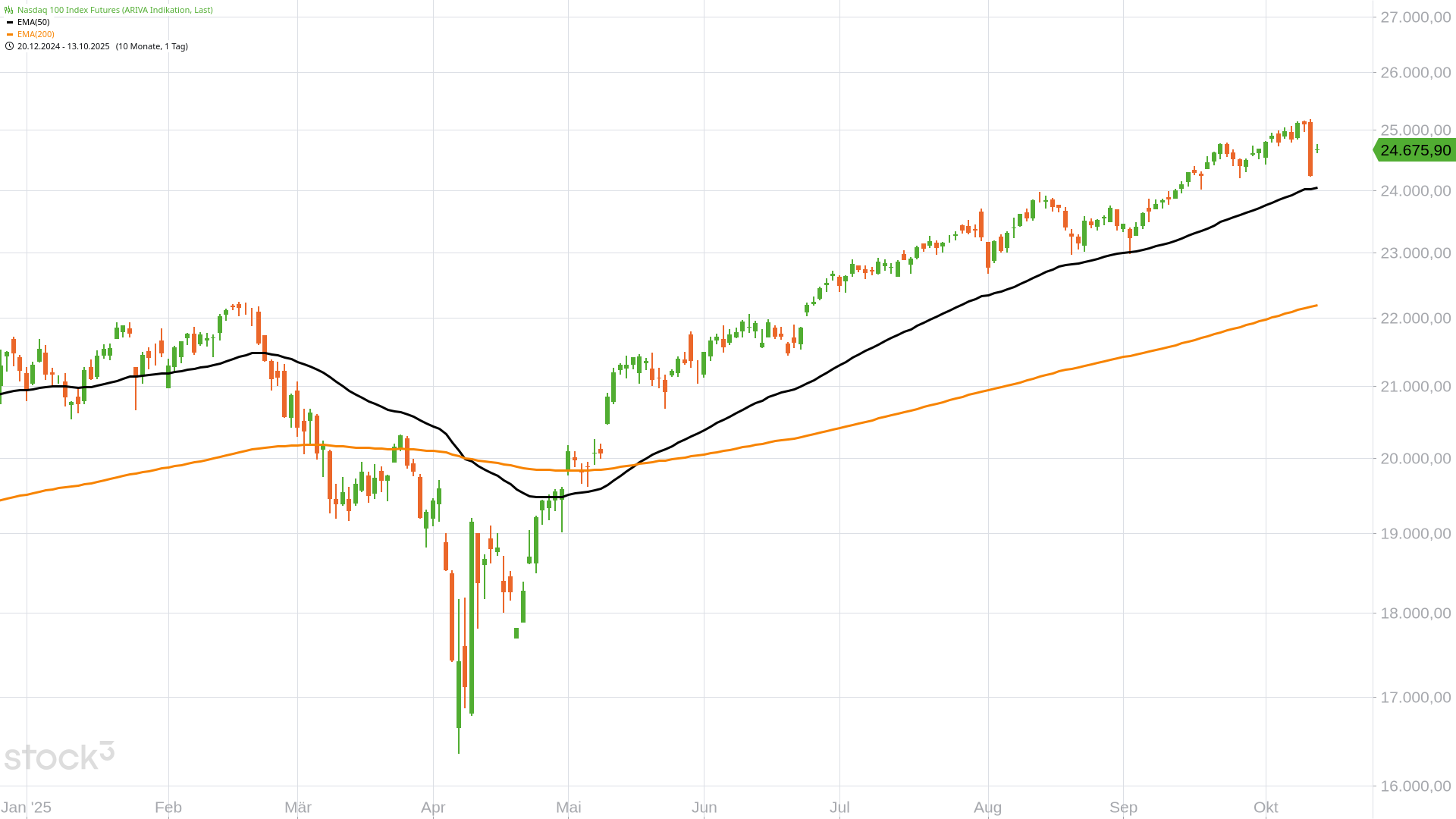 Nach den kräftigen Verlusten zum Wochenschluss zeigt sich an der Wall Street zu Wochenbeginn eine deutliche Erholung. Die US-Futures zogen am Montagmorgen spürbar an: Der S&P 500-Future legte um ca. 1,5 % zu, der Nasdaq 100 gewann knapp 1,8 % und der Dow-Jones-Future stieg um etwa 1 %.