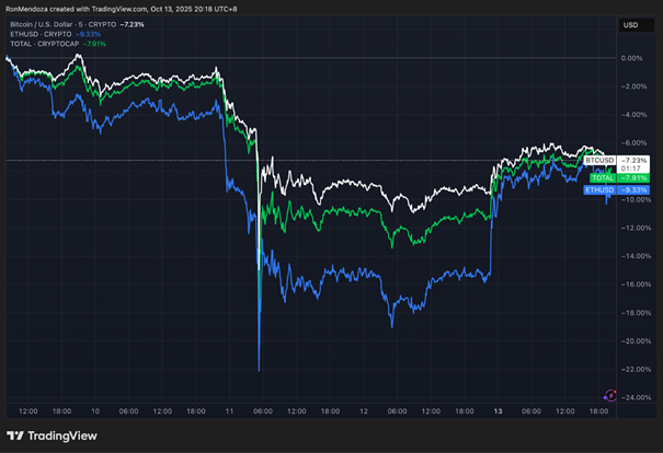 In diesem Zusammenhang verlor Bitcoin an nur einem Tag 7,8 % seines Wertes und fiel von 122.582 USD bis auf weniger als 110.000 USD. Noch höher fiel der Verlust bei Ethereum mit 12,33 % aus, der den Coin von 4.368 USD bis auf 3.435 USD stürzen ließ.