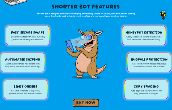 Snorter nutzt einen mehrschichtigen Intelligenz-Stack, welcher unentwegt die Transaktionswarteschlangen, Validatoren-Feeds und Liquiditätspools von Solana scannt, um die neuen Coins in Echtzeit aufzuspüren.