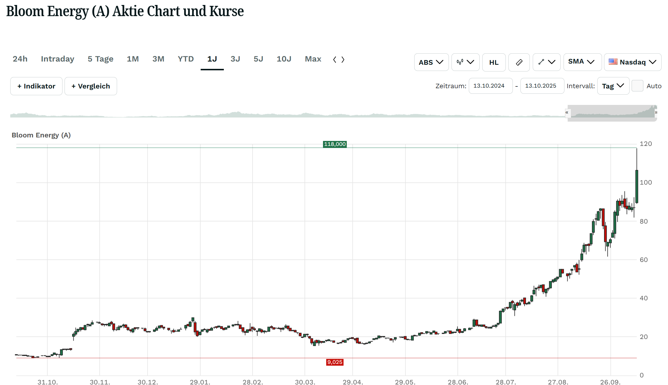 Bloom Energy hat einen weiteren Meilenstein erreicht. Brookfield Asset Management will bis zu 5 Milliarden US-Dollar in die Brennstoffzellentechnologie des kalifornischen Unternehmens investieren, um Rechenzentren für Künstliche Intelligenz (KI) mit Energie zu versorgen. Die Partnerschaft umfasst die gemeinsame Entwicklung sogenannter "KI-Fabriken" weltweit, darunter auch ein europäischer Standort, der noch vor Jahresende bekanntgegeben werden soll.