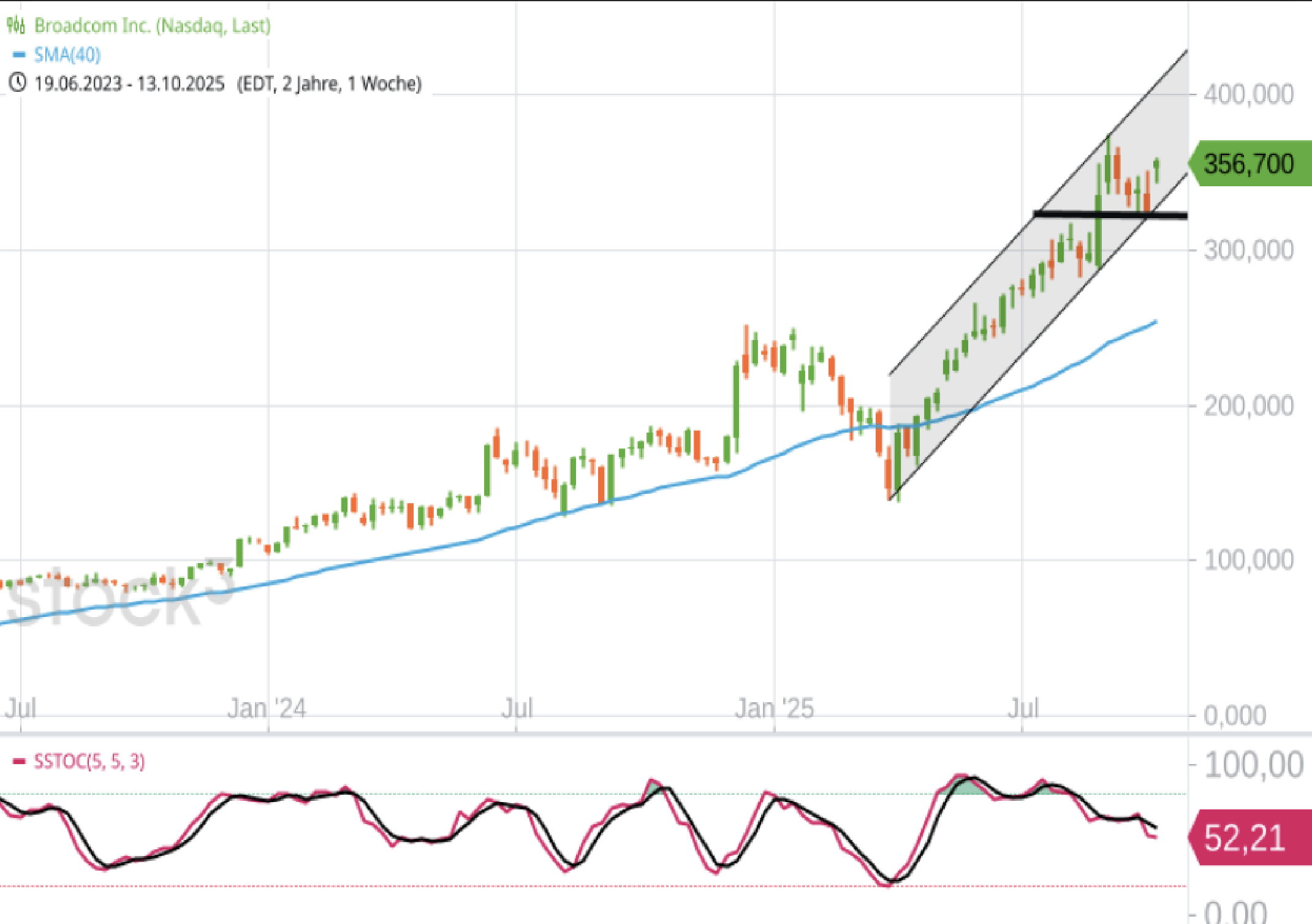Beide haben eine mehrjährige Vereinbarung bis 2029 über maßgeschneiderte KI-Beschleuniger mit einem Zielumfang von 10 Gigawatt geschlossen. BROADCOM liefert die Beschleuniger- und Netzwerksysteme auf Ethernet-Basis, OpenAI bringt das Chip- und Systemdesign ein. Das verschafft BROADCOM Visibilität über mehrere Jahre und stärkt die Stellung in KI-Rechenzentren jenseits von Einzelaufträgen. Das führte gestern zu deutlichen Kursgewinnen. Das KGV von 38 ist nicht günstig, aber im Branchenvergleich mit KI-Bezug noch gut nachvollziehbar. Positiv wirkt die zeitliche Streckung der Kooperation, die Ergebnisglättung ermöglicht. Für den Kurs spricht kurzfristig die größere Planungssicherheit, während weitere kräftige Bewertungsaufschläge wohl zusätzliche Großaufträge oder unerwartet große Margenfortschritte erfordern.