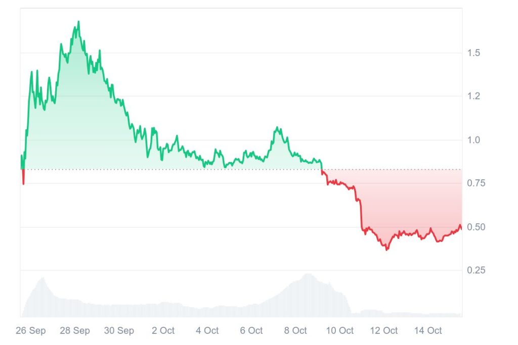 Die native Kryptowährung XPL kam also erst vor wenigen Wochen auf den Markt und verzeichnete direkt zum Start eine starke Rallye von 0,8 $ auf ein immer noch intaktes Allzeithoch bei 1,68 $, das am 28. September erreicht wurde. Seitdem ist die Nachfrage nach der Kryptowährung jedoch immer weiter zurückgegangen.