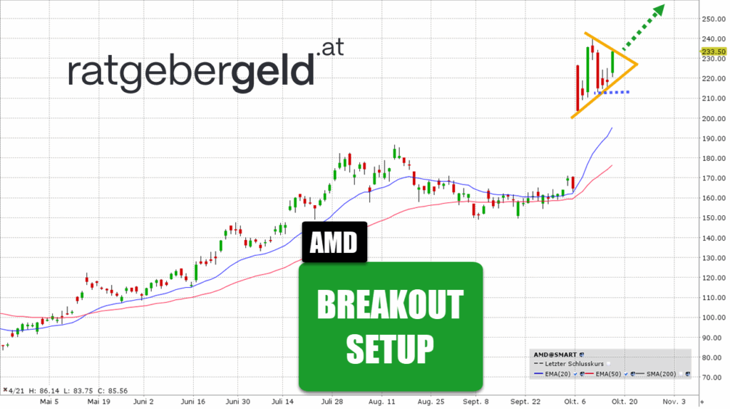 AMD ist ein wichtiger Akteur im Halbleitersektor, der stark von Trends wie Künstlicher Intelligenz, Cloud-Computing und dem Gaming-Markt profitiert. Nach einem GAP-Up konsolidiert die Aktie aktuell in einer Dreiecksformation.