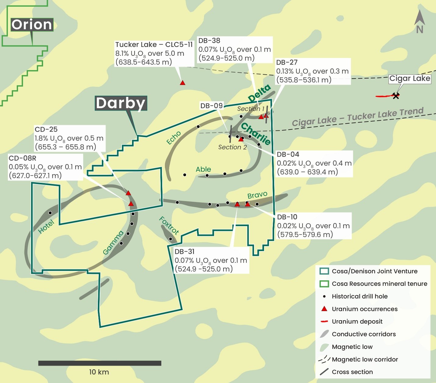 Am 17. Oktober veröffentlichte Cosa ein bahnbrechendes Update mit der Bestätigung von mehreren vorrangigen Bohrzielen auf dem Darby-Projekt - einem 70/30-Joint Venture mit Uran-Schwergewicht Denison Mines, nur 10 Kilometer westlich der Cigar Lake-Mine von Cameco.