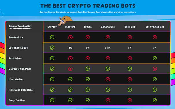 Neben diesen gibt es noch Trojan, der zu den härtesten Konkurrenten des Snorter Bots zählt. Denn dieser ist ebenfalls auf der Solana-Blockchain beheimatet und profitiert deshalb von einer vergleichbaren Leistungsfähigkeit. Im Unterschied zu Trojan handelt es sich bei Snorter jedoch um einen Handelsroboter, der auch auf anderen Chain operieren kann.